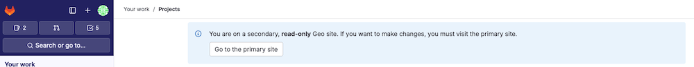 - 对于在正在访问的特定辅助站点上完全最新的仓库,Git 读取操作仍然按预期工作,包括通过 HTTP(s) 或 SSH 进行的身份验证。但是,由 GitLab Runners 执行的 Git 读取将会失败。