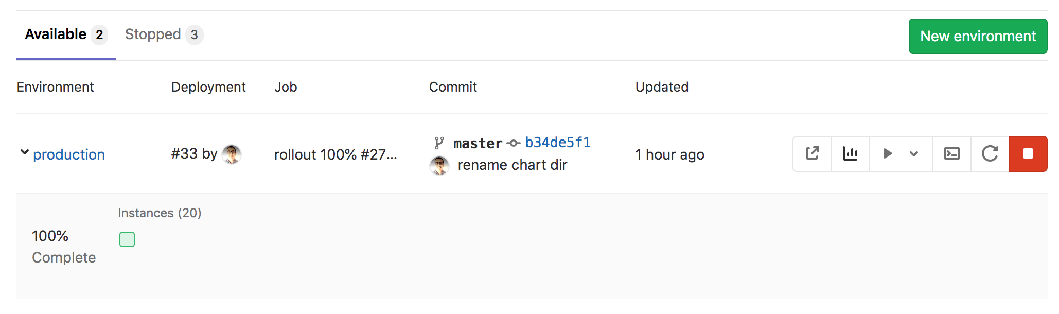 - Stop environment ( ) - 有关更多信息,请参阅 停止环境