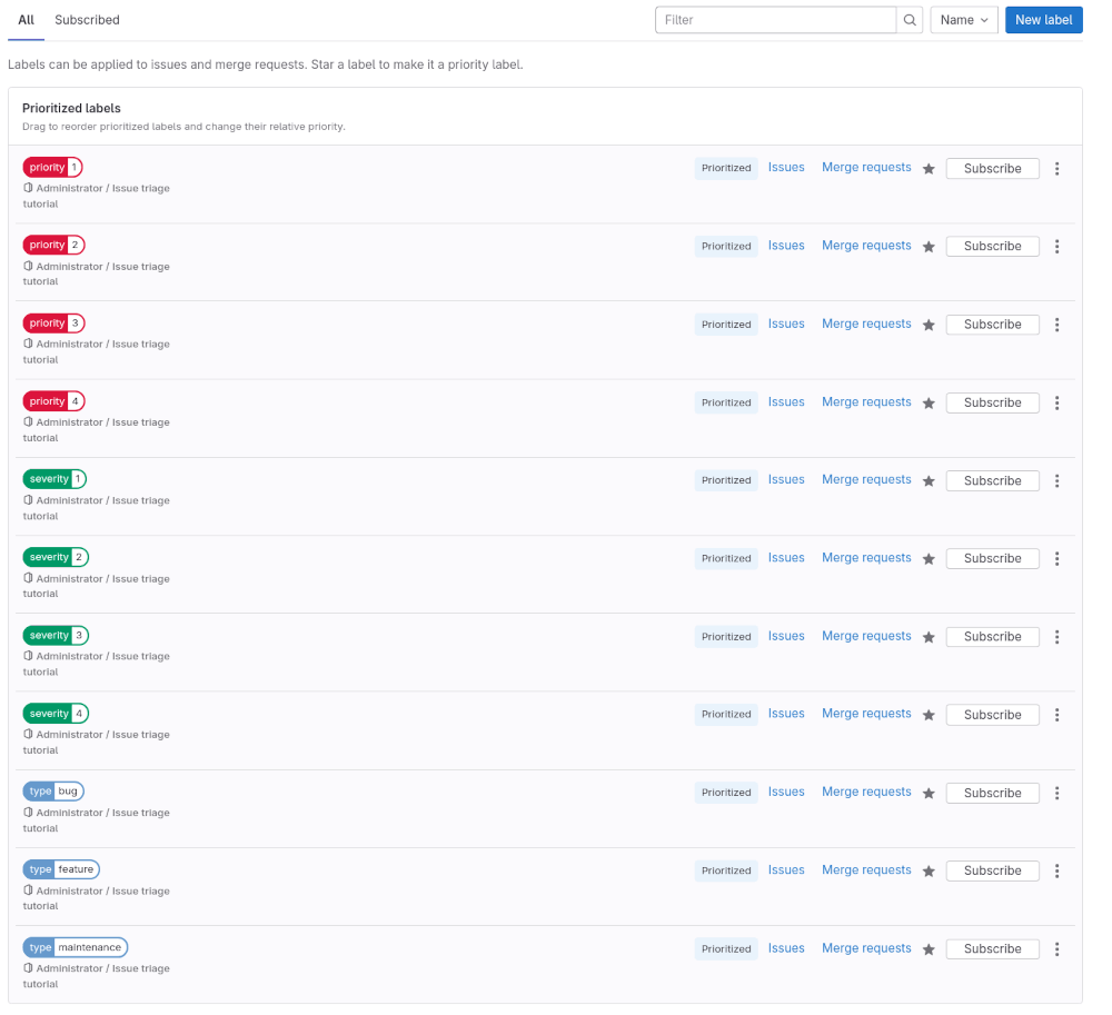 - 为你之前创建的所有标签设置优先级。 确保优先级和严重程度较高的标签在列表中高于数值较低的标签。