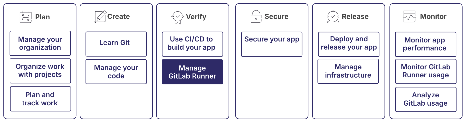 GitLab Runner 管理涵盖了管理您的 CI/CD 作业执行基础设施的完整生命周期: